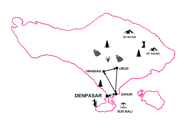 * L’accès à Jatiluwih et Tirta Gangga est limité à des bus d’une capacité maximale de 28 sièges donc groupe limité à 25 participants au maximum – il n’est possible de rejoindre le temple de Batukaru en bus donc ce dernier n’est pas inclus au programme